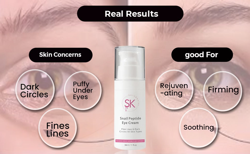 Skin Kaviar Snail Peptide Eye Cream with 73.7% Snail Mucin and Niacinamide - Brightening Korean Night Cream for Fine Lines and Dark Circles